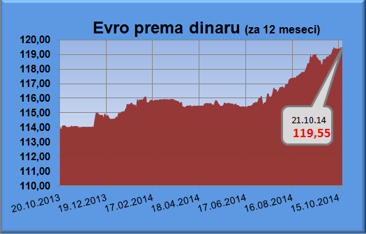 Dinar će biti slabiji za 4,1 odsto prema evru nego na početku ove godine, za 4,7 odsto slabiji nego pre godinu dana, a za 0,8 odsto slabiji nego pre mesec dana.