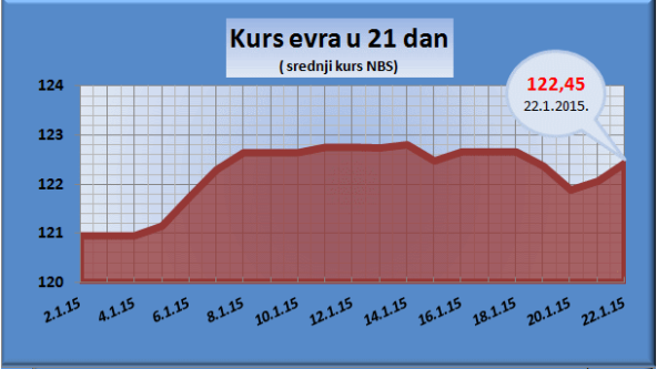 Dinar je ove godine bio najjači u odnosu na evro od 1. do 4. januara (trgovanje 31.12), kada je jedan evro koštao 120,9583 dinara, a najslabiji 14. januara, kada je evro bio 122,8202 dinara.