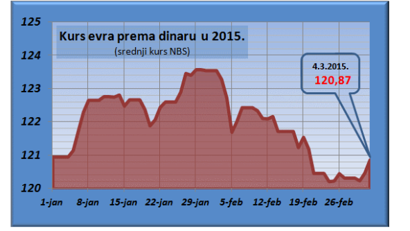 Prema američkoj valuti, dinar je slabiji 1,8 odsto na mesečnom, a 21‚8 odsto na godišnjem nivou.