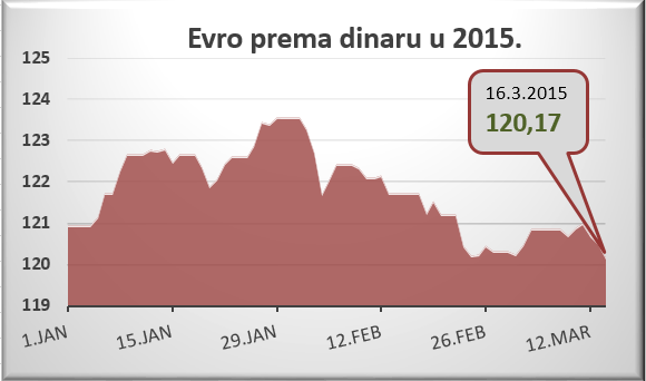 Najmanja vrednost dinara prema evru od početka godine bila je 29. januara, 123,5774 dinara za evro.