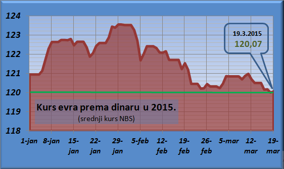 Poslednji put srednji kurs evra je vredeo manje od 120 dinara 17. novembra 2014. godine i tada je odnos bio 119,95 za jedan.