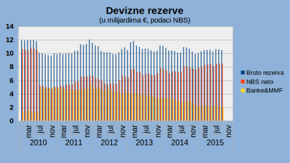 Kada se gledaju ukupne devizne rezerve, one su na kraju septembra iznosile 10,5 milijardi evra, čime je obezbeđena pokrivenost novčane mase (M1) od 279 odsto, kao i oko sedam meseci uvoza robe i usluga.