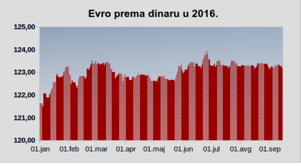 Ove godine dinar je bio najjači 4. januara, kada je kurs bio 121,5145 dinara za evro, a najslabiji 27. juna, kada je evro bio 123,9531 dinar.