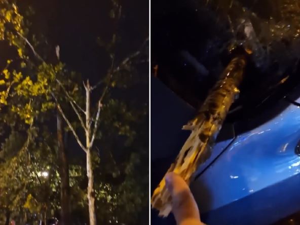 Na svu sreću, nikog nije bilo unutra kada je snažan orkanski vetar polomio granu sa drveta koja je probila staklo ispred mesta vozača u jednom automobilu u Novom Sadu. Grana se toliko jako "zabila" u šoferku da ne mrda.