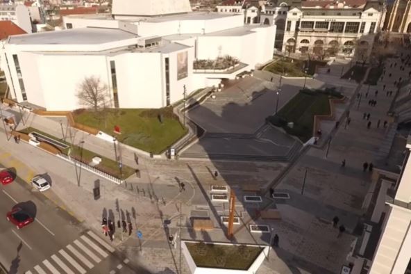 Pozorišni trg sada ima najmoderniju rasvetu, a na lampama se nalazi grb grada. Posebno je značajan podatak da su u ovom velikom poslu bile angažovane domaće firme, domaći stručnjaci, a korišćen je i domaći kamen. U okviru uređenja, potporni zid oko pozorišta preoblikovan je u klupu obloženu tikovinom, koju odlikuju dugovečnost i visoka otpornost na atmosferske uticaje, dok je uz trotoar do zelenog pojasa izgrađena dvosmerna biciklistička staza sa ugradnom podnom rasvetom, tako da će biciklisti moći da voze i kroz pešačku zonu na Pozorišnom trgu.
