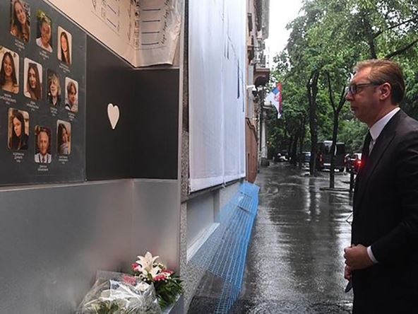 Predsednik Srbije Aleksandar Vučić položio je jutros cveće u osnovnoj školi "Vladislav Ribnikar", na godišnjicu ubistva devet učenika i radnika obezbeđenja ove škole i poručio da je "prošla godina od nezapamćene tragedije koja je ostavila neizbrisiv ožiljak na duši cele zemlje, ali nisu prošli bol, neverica i neizmerna tuga".