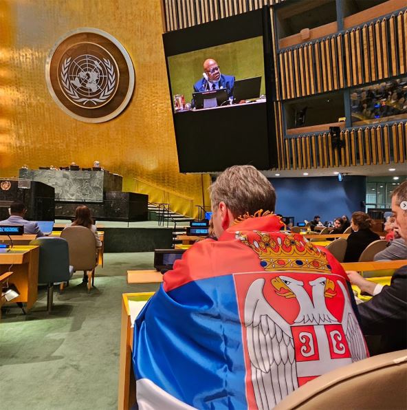 Predsednik Srbije Aleksandar Vučić je tokom gostovanja na TV Hepi u emisiji "Ćirilica" komentarisao unošenje srpske zastave u Generalnu skupštinu Ujedinjenih nacija.