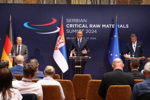 U Palati Srbija je završen Samit o kritičnim sirovinama na kome su učestvovali predsednik Srbije Aleksandar Vučić, kancelar Savezne Republike Nemačke Olaf Šolc i potpredsednik Evropske komisije i evropski komesar za međuinstitucionalne odnose i strateško predviđanje Maroš Šefčovič.