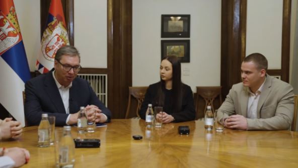 Predsednik Aleksandar Vučić razgovarao je jutros sa studentima koji su ga posetili na radnom mestu.