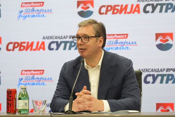 Predsednik Srbije Aleksandar Vučić obratio se večeras iz sedišta Srpske napredne stranke (SNS) na Novom Beogradu povodom rezultata lokalnih izbora u opštinama Zaječar i Kosjerić. Proglasio je pobede na ovim biračkim mestima.
