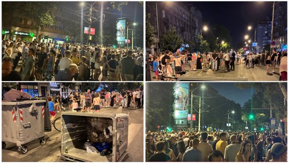 Studenti i građani okupili se se oko 18 časova ispred Mašinskog fakulteta u Ulici kraljice Marije. Postavili su kontejnere sa obe strane mase.
