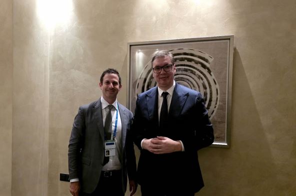 "Sa predsednikom globalnih poslova kompanije Goldman Sachs Džaredom Koenom o ekonomskim tokovima u uslovima pojačanih geopolitičkih rizika, uticaju bezbednosnih izazova na finansijska tržišta, kao i o perspektivama rasta evropskih ekonomija u narednom periodu", napisao je Vućić na Instagramu.