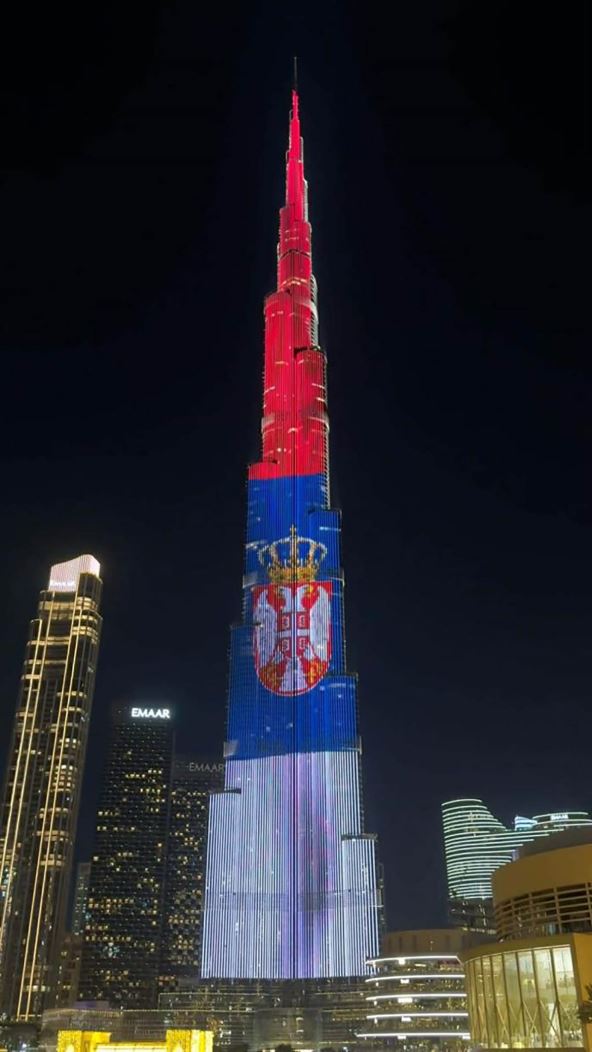 Burdž Kalifa, najviša zgrada na svetu koja se nalazi u Dubaiju u Ujedinjenim Arapskim Emiratima (UAE), je u bojama srpske zastave u znak Dana državnosti (Sretenje). Predsednik Srbije Aleksandar Vučić objavio je snimak Burdž Kalife sa srpskom trobojkom i zahvalio se ovoj arapskoj zemlji.