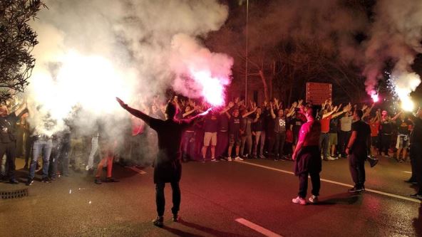 Na snimku objavljenom na Youtube vidi se da su navijači palili baklje, vikali parole protiv NATO, a jedan od njih je nosio i zastavu na kojoj je precrtan znak NATO-a.