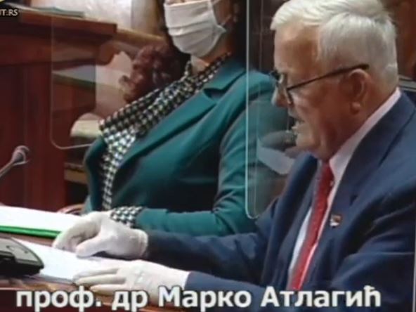 Atlagićeva glavna poruka bila je da su predstavnici opozicije "želeli što više mrtvih od korona virusa kako bi za to optužili predsednika Srbije Aleksandra Vučića". Atlagić, koji ima 71 godinu, pa samim tim nije ni trebalo da prisustvuje sednici jer spada u najranjiviju grupu, optužio je predstavnike opozicije da "rade protiv interesa svoje države".