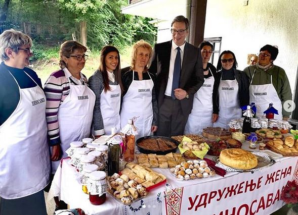 Udruženje žena dočekalo je Vučića raznim đakonijama.