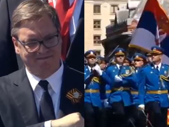 Predsednik Srbije Aleksandar Vučić, koji prisustvuje Vojnoj paradi u Moskvi, pozdravio je ešalon Garde Vojske Srbije koji učestvuje u smotri.