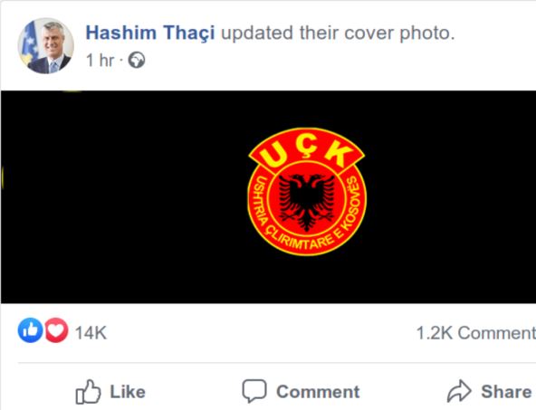Tači je fotografiju postavio oko 11 sati i na njoj se vidi crna pozadina sa amblemom terorističke OVK.