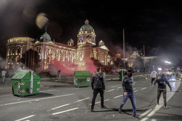 "Ekstremisti desničarskih i profašističkih organizacija napali su Skupštinu Srbije, ušli u Skupštinu. Tako su izvršena najmanje dva teška krivična dela. Više sati bukvalno su napadali pripadnike policije, vređali ih kamenovali i udarali na sve načine", rekao je predsednik.
