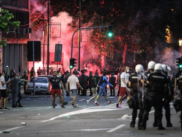 Neredi su izbili na okupljanjima u utorak i sredu, kada su grupe huligana napale policiju, posle čega je došlo do okršaja u centru grada u kojima povređen veliki broj policajaca i učesnika protesta.