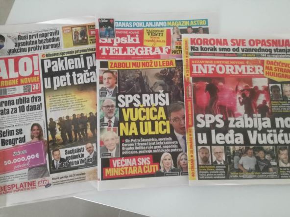 "SPS zabija nož u leđa Vučiću", "SPS ruši Vučića na ulici", "Socijalisti podmuklo udaraju na Vučića", naslovi su današnjih pojedinih dnevnih listova u Srbiji.