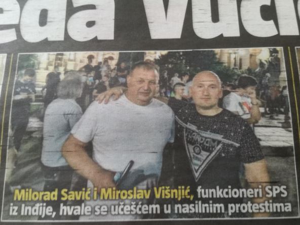 U međuvremenu se oglasio i Opštinski odbor Socijalističke partije Srbije u Inđiji, koji je "najoštrije osudio ponašanje svojih članova Milorada Savića i Miroslava Višnjića, koji su na društvenim mrežama objavili neprimerenu fotografiju načinjenu ispred Doma Narodne Skupštine Srbije, u vreme nasilničkih i huliganskih protesta".