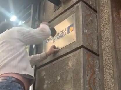 Video snimak na kojem se vidi kako nepoznata osoba skida tablu objavio je na Tviteru bivši poslanik DS Balša Božović.