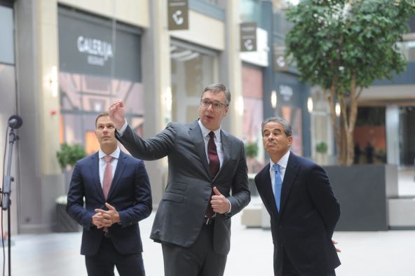 Predsednik Srbije Aleksandar Vučić i predsednik kompanije "Igl Hils" Muhamed Alabar obilaze završne radove na izgradnji objekta "Galerija Belgrade", u okviru projekta "Beograd na vodi".