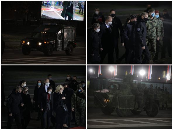 "Čestitam srpskoj policiji na odličnoj pokaznoj vežbi. Trudili su se da to bude što kraće, prvi put su izveli određene stvari, a to je da na prostor koji nije unapred pripremljen sleti helikopter u noćnim uslovima. Videli ste koliko se nisko spustio, plašio sam se da ne udari u bandere", obratio se predsednik nakon vežbe i dodao: