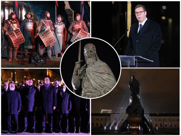 "Ovaj velelepni spomenik ga predstavlja kao odlučnog vladara. Do Nemanje smo bili pleme, a od njega pa do danas država i narod", rekao je Vučić.