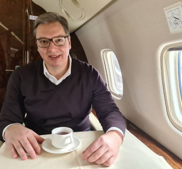 "Očekuju nas važni razgovori za Srbiju, a teme, od Kosova i Metohije, evropskog puta Srbije do izgradnje metroa u Beogradu", piše uz sliku Vučića kako sedi u avionu, a na kraju se dodaje "Živelo srpsko-francusko prijateljstvo".