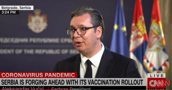"Možete u Srbiji dobiti američke vakcine, evropske, ali i ruske i kineske. Možete da birate, poručio je Vučić i voditelja CNN pozvao da ako želi da se vakciniše to može da uradi u Srbiji.
