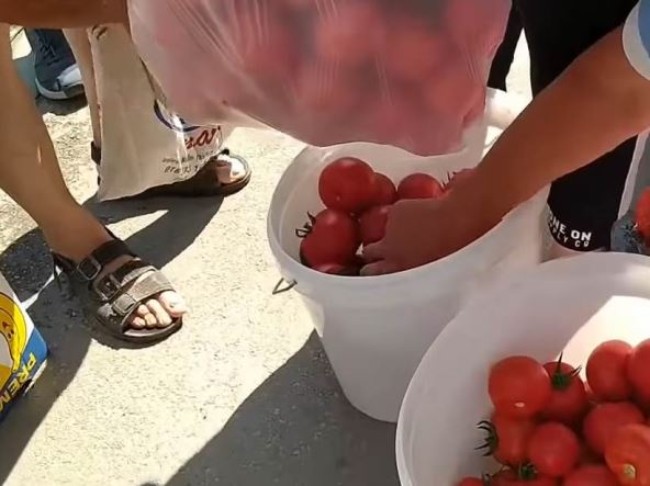 Naime, leskovački poljoprivrednici su ispred velikih marketa u Mlinskoj ulici za oko 30 minuta podelili nekoliko tona paradajza.