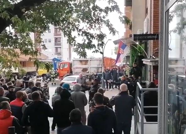 Na najnovijem snimku se vidi trenutak kada kosovska policija ulazi u apoteku, a nedugo zatim se jedan njen pripadnik raspravlja sa okupljenim građanima. U trenutku kada su izašli, okupljeni srpski narod se pobunio, pa su u jednom momentu počeli kamenicama da gađaju naoružane policijske snage.