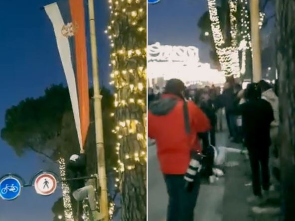 Tokom demonstracija protiv inicijative "Otvoreni Balkan" i posete predsednika Srbije Aleksandra Vučić, neki od okupljenih su uzeli jednu od srpskih zastava koja je postavljena u znak dobrodošlice i pokušali su da je zapale, ali je izgoreo samo jedan deo.