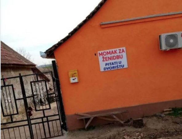 Budući mladoženja je na fasadi svoje kuće okačio natpis "Momak za ženidbu - pitati u dvorištu" u pokušaju da privuče zainteresovane devojke.