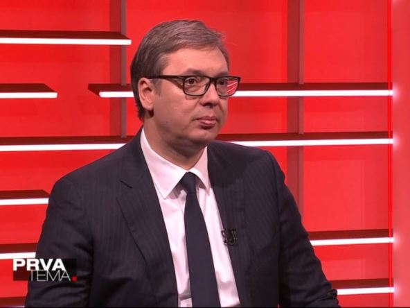 Predsednik Srbije Aleksandar Vučić gostovao je večeras u emisiji "Prva tema" na TV Prva gde je, između ostalog, govorio o aktuelnoj situaciji u svetu i pritiscima na Srbiju da uvede sankcije Rusiji.