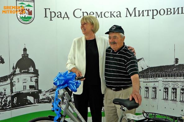 Sremska Mitrovica i Banja Luka su od 2008. godine pobratimski gradovi i gaje snažne partnerske odnose. Gradonačelnica Sremske Mitrovice je pozdravila veliki humanitarni gest čika Radoslava, kao i podršku svog banjalučkog kolege. Grad Sremska Mitrovica je čika Radoslavu u znak zahvalnosti poklonio nov bicikl, ali Radoslav ne prestaje da iznenađuje: “Čika Radoslav nam je danas rekao da treba pomagati koliko god smo u mogućnosti, a takav nam je primer i pružio. Pošto znamo da imamo planove za buduća putovanja, rešili smo da mu poklonimo nov bicikl, ali čika Radoslav je rešen da nastavi sa svojim humanitarnim angažmanom i ovaj bicikl pokloni”, rekla je gradonačelnica Sremske Mitrovice, Svetlana Milovanović.