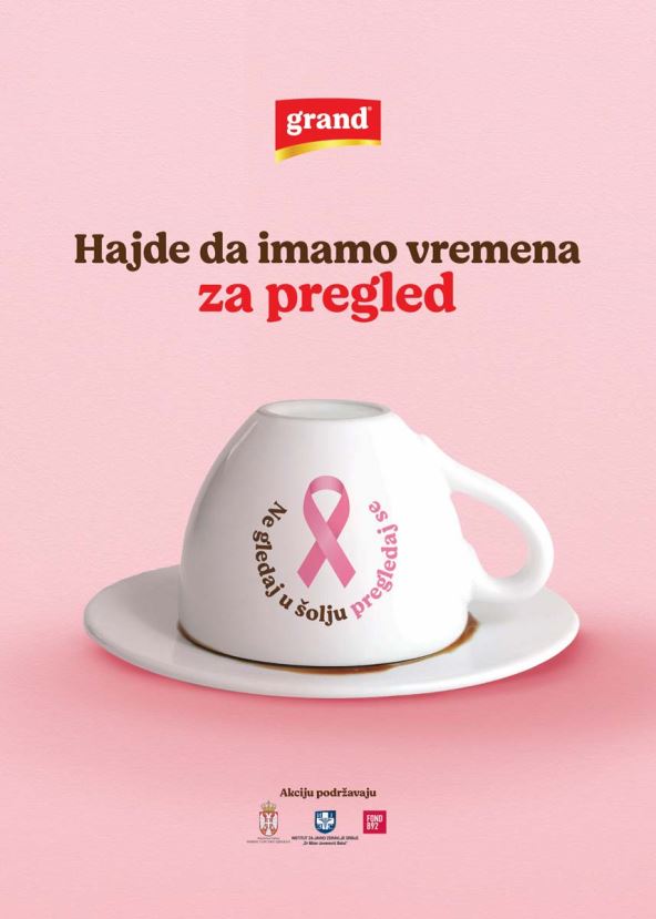 U oktobru mesecu prošle godine, zajedno sa Ministarstvom zdravlja i Institutom za javno zdravlje Srbije „Dr Milan Jovanović Batut“, Grand kafa je realizovala akciju u okviru koje se za besplatan pregled i mamografiju, prijavilo više od 2.000 žena. U nastavku kampanje „Hajde da imamo vremena za pregled“, Grand kafa podseća na važnost prevencije i brige o sebi kao najvažnijih koraka u očuvanju zdravlja žena.