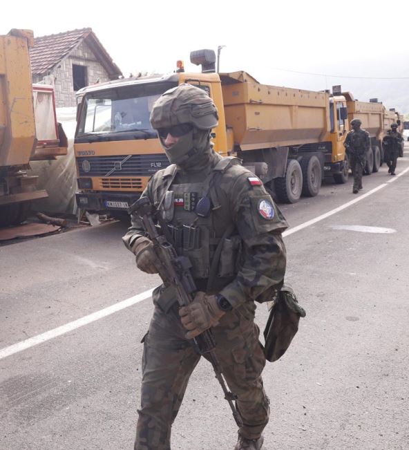 "Celokupna bezbednosna situacija na severu Kosova je napeta. Misija KFOR-a koju predvodi NATO pažljivo prati i spremna je da interveniše ako stabilnost bude ugrožena, a u skladu sa svojim mandatom, koji se zasniva na Rezoluciji Ujedinjenih nacija 1244 iz 1999, godine. Misija KFOR-a koju predvodi NATO je potpuno usredsređena na svakodnevnu primenu mandata Ujedinjenih nacija, da osigura bezbedno i sigurno okruženje, kao i slobodu kretanja za sve stanovnike Kosova. KFOR održava vidljivu i spremno držanje na terenu i komandir KFOR-a je u kontaktu sa svim svojim glavnim sagovornicima, uključujući predstavnike kosovske bezbednosne organizacije i srpskog ministra odbrane".