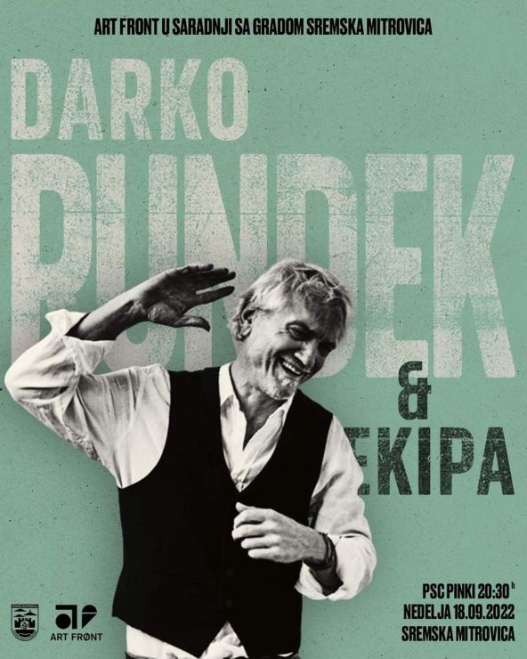 Grad Sremska Mitrovica i udruženje građana “Art Front” pozivaju sve da uživaju na koncertu Darka Rundeka i prepuste se njegovim stihovima i notama. Nedelja, 18. septembar sa početkom u 20.30 u PSC (Hali) “Pinki”. Ulaz je besplatan, dovoljno je samo da dođete.