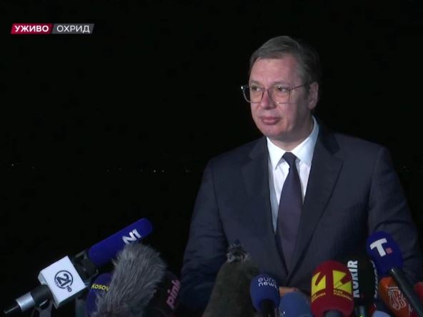 Predsednik Srbije Aleksandar Vučić obratio se medijima večeras nakon maratonskog sastanka koji je danas održan u Ohridu. U pitanju je nova runda dijaloga između Beograda i Prištine na najvišem političkom nivou u čijem je fokusu evropski sporazum za tzv. Kosovo, a kojima je predsedavao šef evropske diplomatije Žozep Borelj.