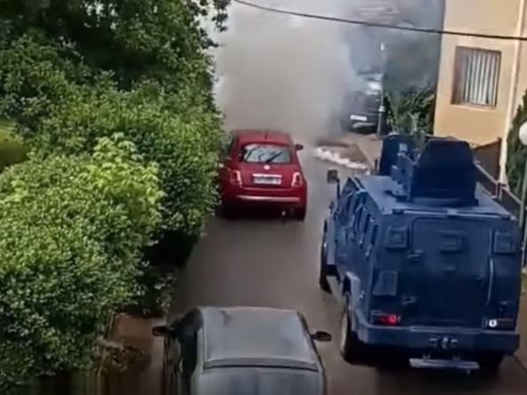 Nakon ulaska pripadnika Kosovske policije uz suzavac i šok bombe u zgradu opštine, oklopna vozila patroliraju ulicama Zvečana, prenosi Kosovo online. Na snimku koji je objavljen, čuje se i zvuk eksplozije.