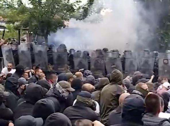 Nakon žestokih incidenata u ponedeljak, vojnici KFOR-a sa opremom sa razbijanje demonstracija postavili su novi kordon nekoliko stotina metara udaljen od zgrade lokalne samouprave u Zvečanu, mnogo dublje u ulici koja vodi prema objektu opštine u odnosu na ponedeljak kada su mu bili mnogo bliže. U kordonu je 20 policajaca sa štitovima. Zatvoreni su i ostali prilazi zgradi lokalne samouprave.