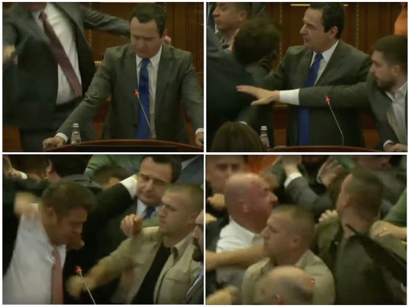 Ponovo je došlo je do fizičkog kontakta između poslanika vladajućeg Samoopredeljenja i poslanika Demokratske partije Kosova. Nakon što je nastao opšti metež, u salu je ušlo i obezbeđenje. U pravcu premijera privremenih prištinskih institucija Aljbina Kurtija poletela je flaša, pa mu je u jednom trenutku prišlo obezbeđenje i raširilo kišobran. Kako prenosi Koha, ranije je Glauk Konjufca rekao je da će građani proceniti ko je započeo današnji sukob, i da je u interesu svih da se ta situacija što pre prevaziđe.