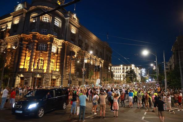 Podsetimo, protesti su počeli posle dva masovna ubistva - u Osnovnoj školi "Vladislav Ribnikar" i u pucnjavi kod Mladenovca i Smedereva početkom maja. Zahtevi protesta su smenjivanje ministra unutrašnjih poslova Bratislava Gašića, direktora BIA Aleksandra Vulina i članova saveta REM-a, kao i oduzimanje nacionalnih frekvencija televizijama i zabrana drugih medija koji promovišu nasilje, kriminal i nemoral. Traži se i smena rukovodstva RTS-a.