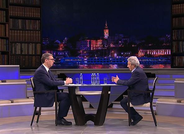 Predsednik Srbije Aleksandar Vučić gostuje večeras u emisiji Ćirilica na Hepi televiziji, gde će govoriti o situaciji na KiM i pritiscima na Srbiju nakon ubistva trojice Srba u selu Banjska.