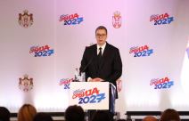 "Tu, verujem da možemo da imamo blizu dvotrećinske većine. Videćemo. Zavisi od raznih razgovora, ali dvotrećinska većina nam je potrebna samo da bismo pokazali podršku svim ovim projektima, napretku Srbije i tome kako to možemo da uradimo, ne da bismo uzimali više vlasti nego što nam po Ustavu pripada", rekao je Vučić.