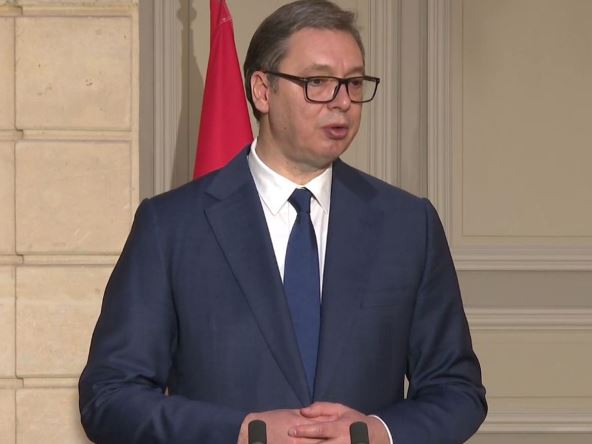 "Naime, jedna strana ne samo da nije ispunila ni jednu tačku, ni okvirnog, ni prvog, ni drugog Briselskog sporazuma, već je ta jedna strana napravila izbore sa izlaznošću 3,4 odsto. Zatim ste nam vi rekli, ja sam vas poslušao, kada ste mi rekli potpisujte peticiju, biće dovoljno da se raspišu ti izbori. Oni nam ni posle toga ne daju izbore. I dalje se ne vodi nikakva istraga protiv onih koji su pucali u našu decu samo zato što su nosili božićno drvo, dakle zašto su nosili badnjak. I dalje se ne vodi istraga zbog svih ranjavanja Srba, već svi pominju samo Banjsku. Pitanje dinara je pitanje sudbinskog opstanka srpskog naroda na Kosovu i Metohiji. A što se tiče Ohridkog sporazuma, već tri stvari je Srbija ispunila, iako nije morala ni jednu, jer da vas podsetim, poštovani gospodine predsedniče, bio je dogovor i svi smo razgovarali o tome da najpre mora da bude ispunjena zajednica Srpskih opština koja nije pomerena sa mrtve tačke. A Srbija je od ličnih karata do tablica, do takozvanih carinskih pečata, to je gde se traži naknada i tako dalje. Dakle sve je to u međuvremenu ispunjeno. Samo sam to želeo da vam kažem i upravo zato ću imati želju da večeras razgovaram sa vama o Savetu Evrope i onome što treba da se dogodi na teritoriji Francuske povodom 75. godišnjice osnivanja Saveta Evrope", dodao je Vučić.