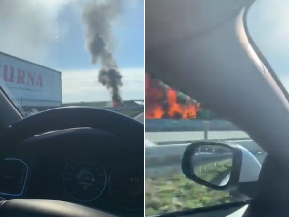 Kako se vidi na snimku koji je objavljen na Instagram stranici 192_rs, vatra "guta" kamion, a crni dim se širi. Ostala vozila ga zaobilaze, a za sada nema informacija šta je uzrok požara kao i da li ima povređenih.